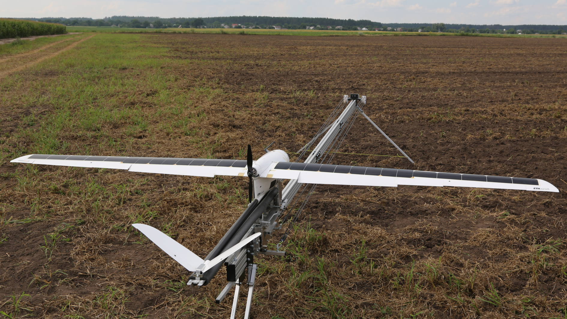Within large fields the crop and soil state can vary, thus without the appropriate information this leads certain parts of the fields to be over-/under fertilized or to wasted water. Within Solar3 the goal was to develop a remote sensing platform observing fields which would enable our project partner Gamaya build a decision support system for the farmers for more sustainable smart farming. Our part of the project was to develop the remote sensing platform SenseSoar2. It is a catapult launched solar-powered fixed-wing UAV capable of flying up to 300km in 6 hours. We prioritized developing an easy to use platform which was successfully validated by our project partners operating 20 BVLOS flights in Ukraine monitoring large fields over the summer 2019.